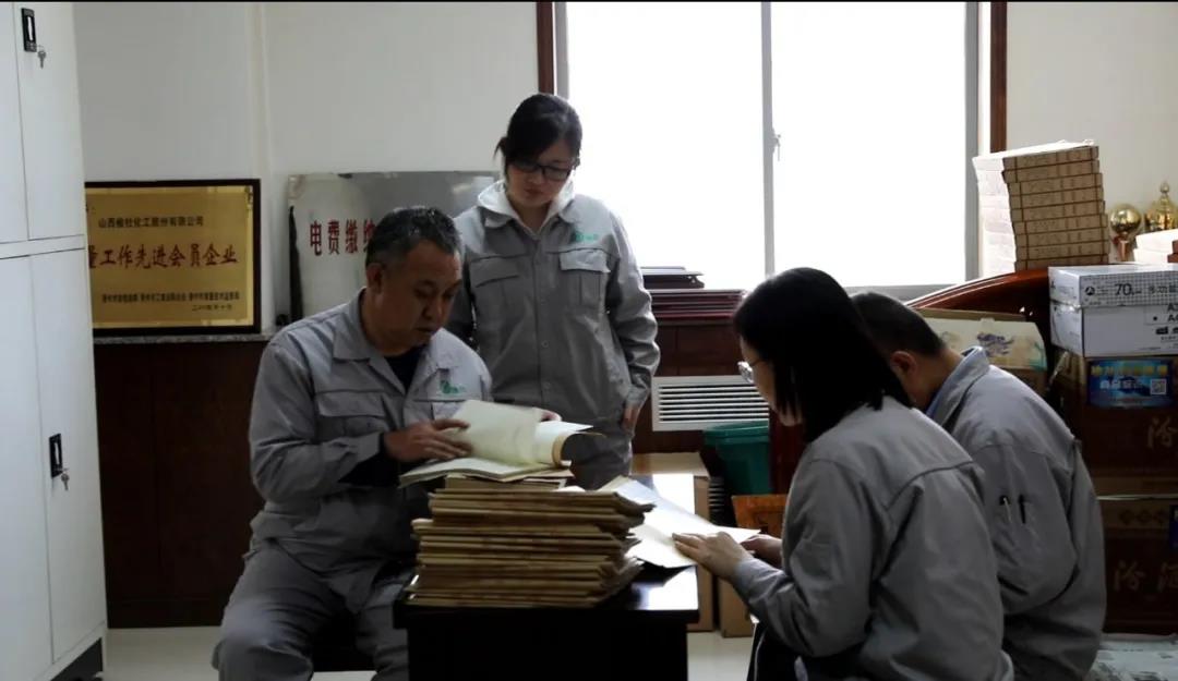 我們一次一次深入檔案室、縣檔案局,翻閱《化工簡報》、《榆社化工報》及其他卷軼浩繁的史料,隨著一本本塵封多年的檔案被開啟,一件件沉寂的往事被重新拾起,一個個曾經(jīng)奮斗的身影被重新演繹......廠史編纂委員會的同事常常被卷宗上年久積落的灰塵弄得噴嚏連連、甚至皮膚過敏;被檔案里發(fā)黃紙張上模糊不清的字跡弄得眼睛酸澀發(fā)脹;堆積如山的資料,分類標記、逐頁翻閱,深怕遺漏,但凡看到國省市縣工業(yè)、化肥文件,榆化、化工字眼,反應(yīng)大背景、相似事件等文件都要從中尋覓有價值的信息,共計翻拍298份文件,回到公司還需要熟練運用電腦技能,將瑣碎的資料整理成文檔,制作成圖表,編輯整理存檔......