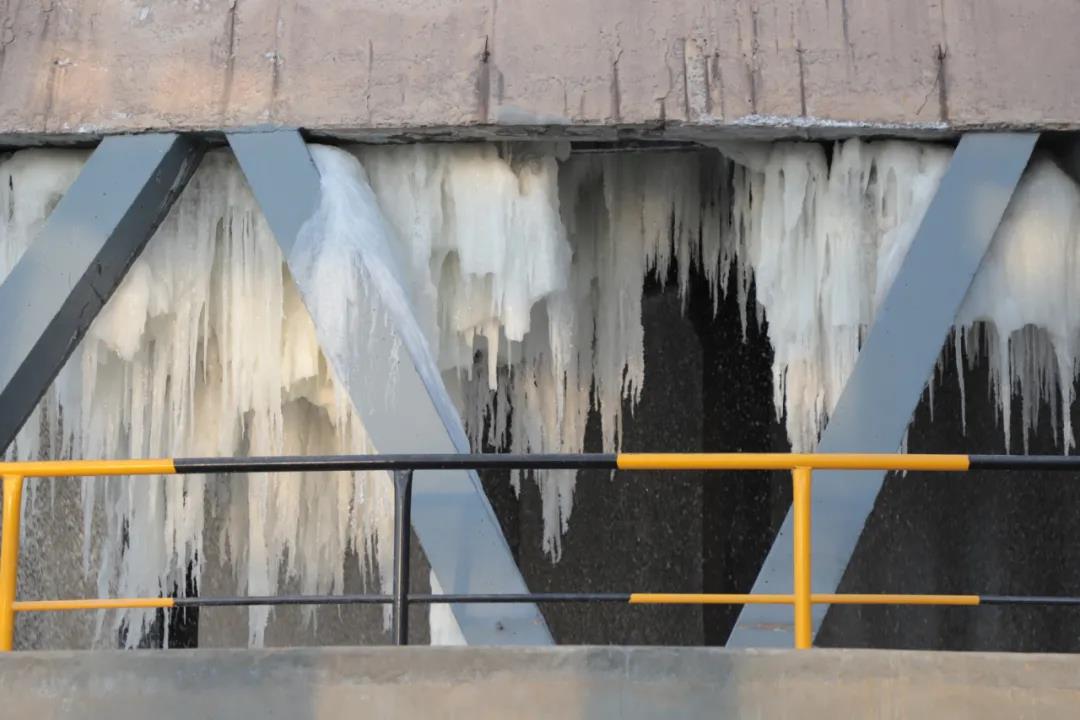 冰柱低垂壓水面。
