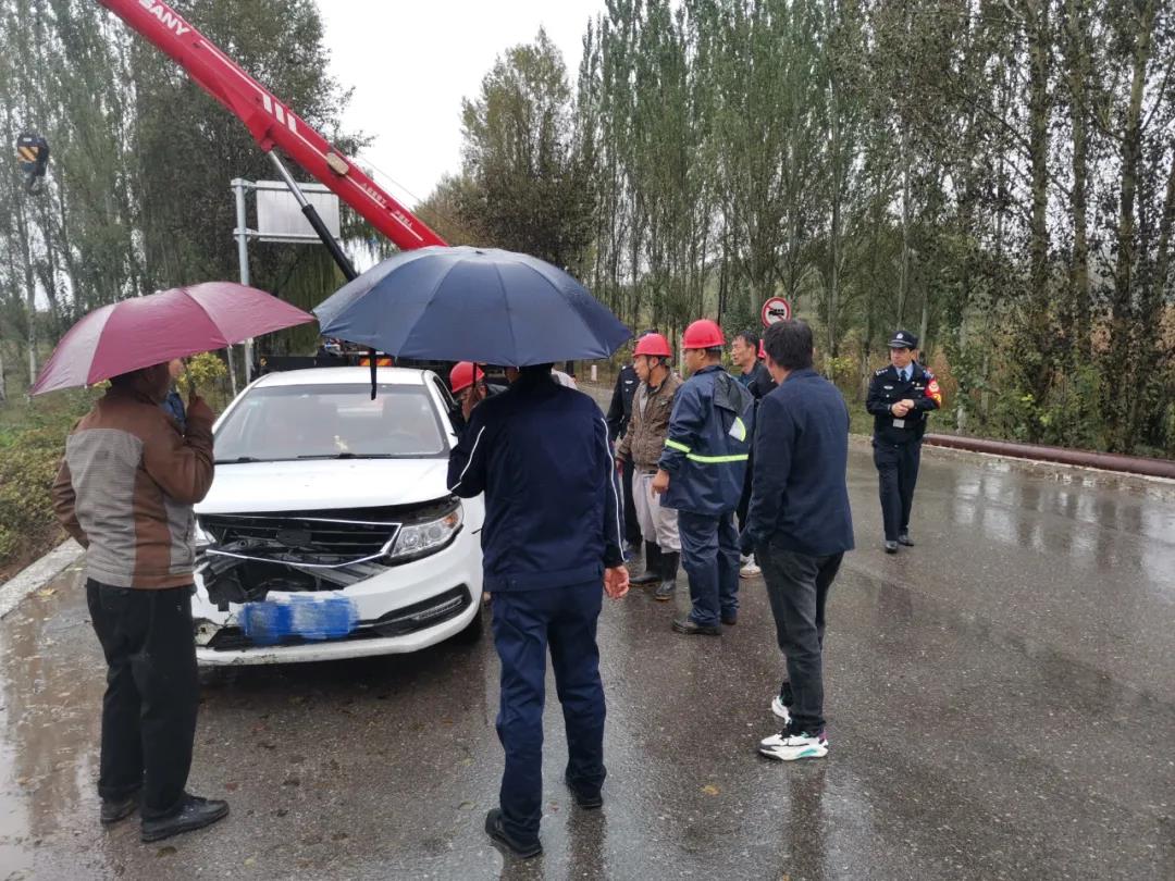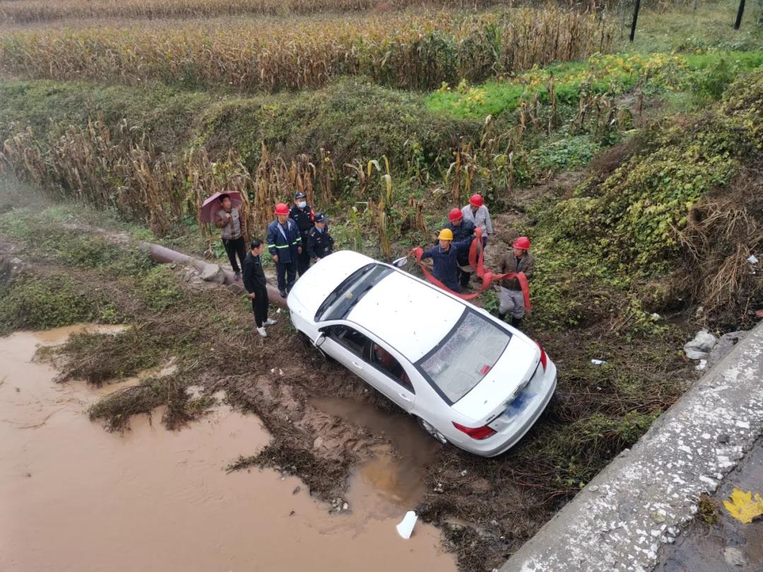 10月5日,滂沱大雨傾盆而下,趕往上大夜的員工苗師傅,在濱河路拐彎時,由于雨天路滑,加上車內視線不好,不慎將車滑落潭村橋下,幸好無人員傷亡。一大早,電化廠領導得知情況后,立即組織救援,馬上聯系吊車司機,組織了檢修車間干部、四位鉗工,拿了兩根吊帶,在最短的時間內趕往事發(fā)現場。