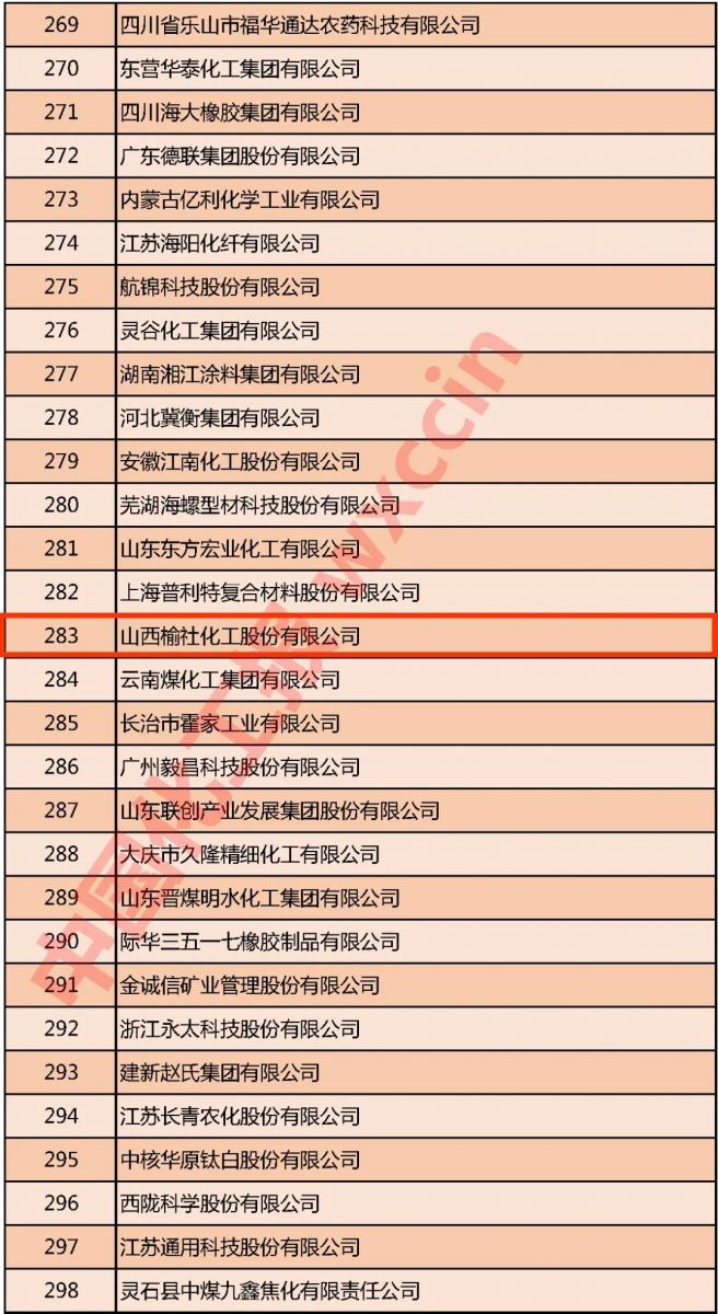 10月20日,2020中國(guó)石油和化工企業(yè)500強(qiáng)發(fā)布會(huì)暨后疫情時(shí)代化工大企業(yè)發(fā)展高峰論壇于線上召開。會(huì)上發(fā)布了2020中國(guó)石油和化工企業(yè)500強(qiáng)排行榜、分行業(yè)百?gòu)?qiáng)企業(yè)排行榜及2020年中國(guó)石油和化工行業(yè)發(fā)展指數(shù)。我公司位列2020中國(guó)石油和化工企業(yè)500強(qiáng)第283位。