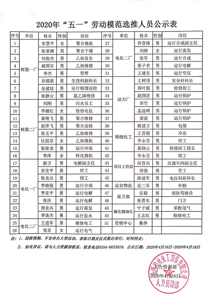 公司2020年度勞動(dòng)模范表彰人選和集體公示