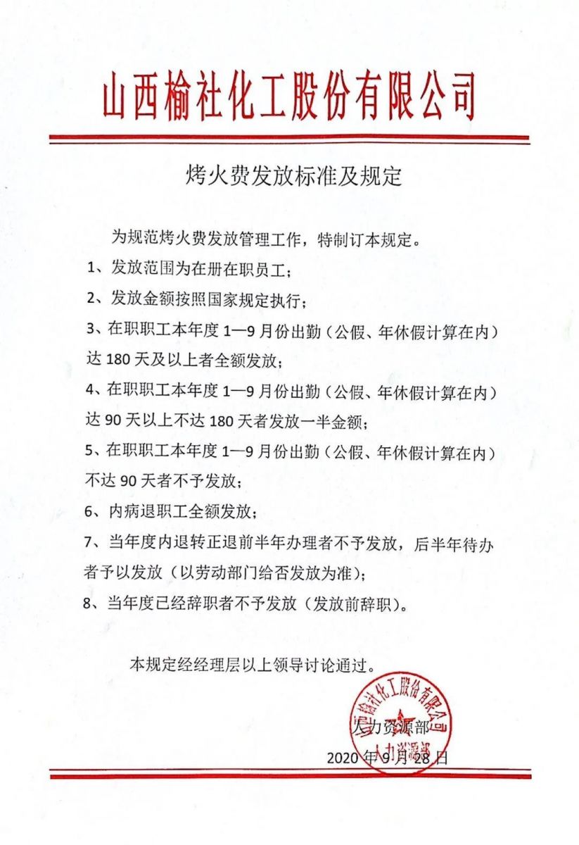 公司2020年度烤火費發(fā)放標(biāo)準(zhǔn)及規(guī)定