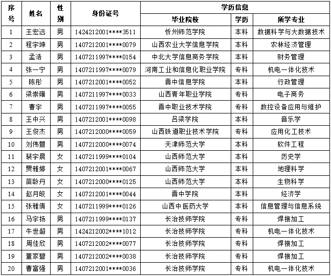 正式入職統(tǒng)一時(shí)間為2024年10月26日,以下人員(詳見附件)于當(dāng)日8:20前攜帶本人身份證到山西榆社化工股份有限公司人力資源部報(bào)到。