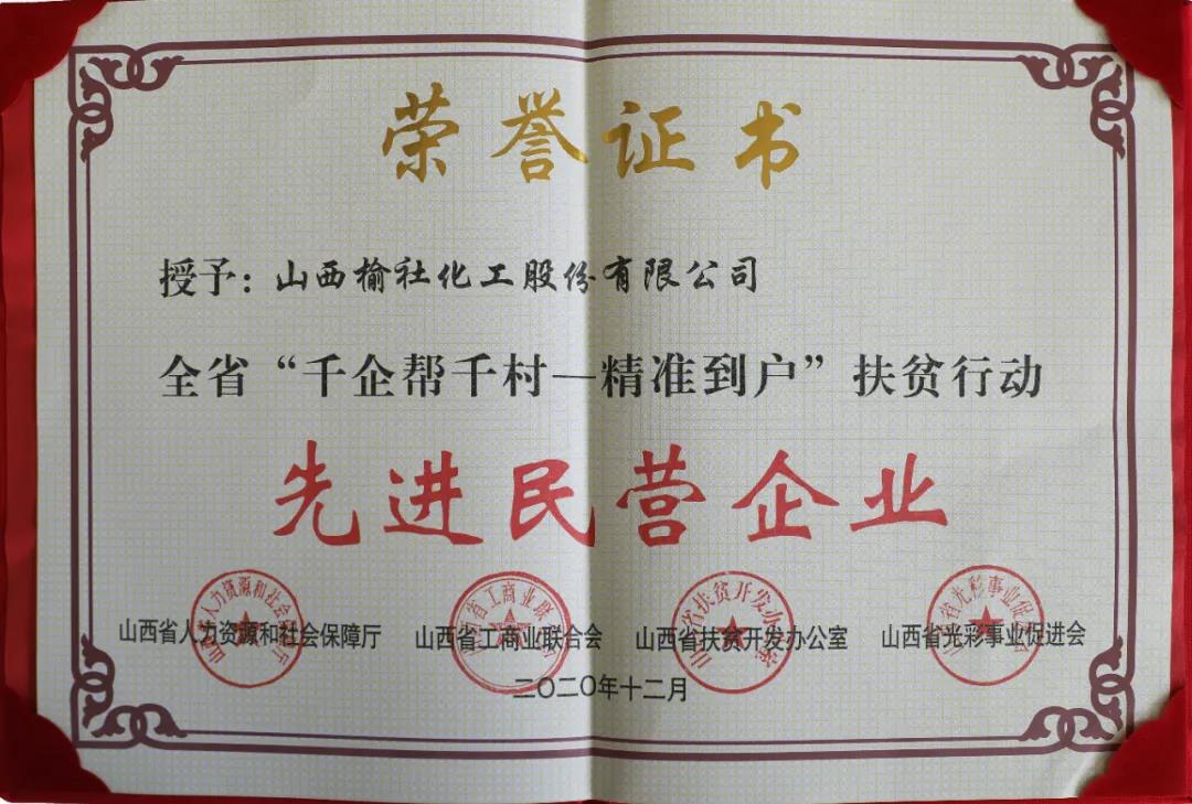 近日,在由山西省人力資源和社會保障廳、山西省工商業(yè)聯(lián)合會、山西省扶貧開發(fā)辦公室、山西省光彩事業(yè)促進會等四家單位聯(lián)合舉辦的全省“千企幫千村——精準到戶”扶貧行動先進民營企業(yè)表彰大會上,公司榮獲“先進民營企業(yè)”榮譽稱號。