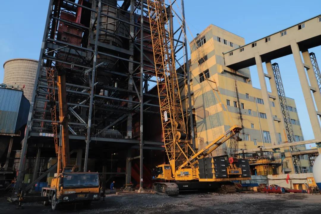 鍋爐內(nèi)外鋼架,頂板及運(yùn)轉(zhuǎn)層梁格已安裝完成。